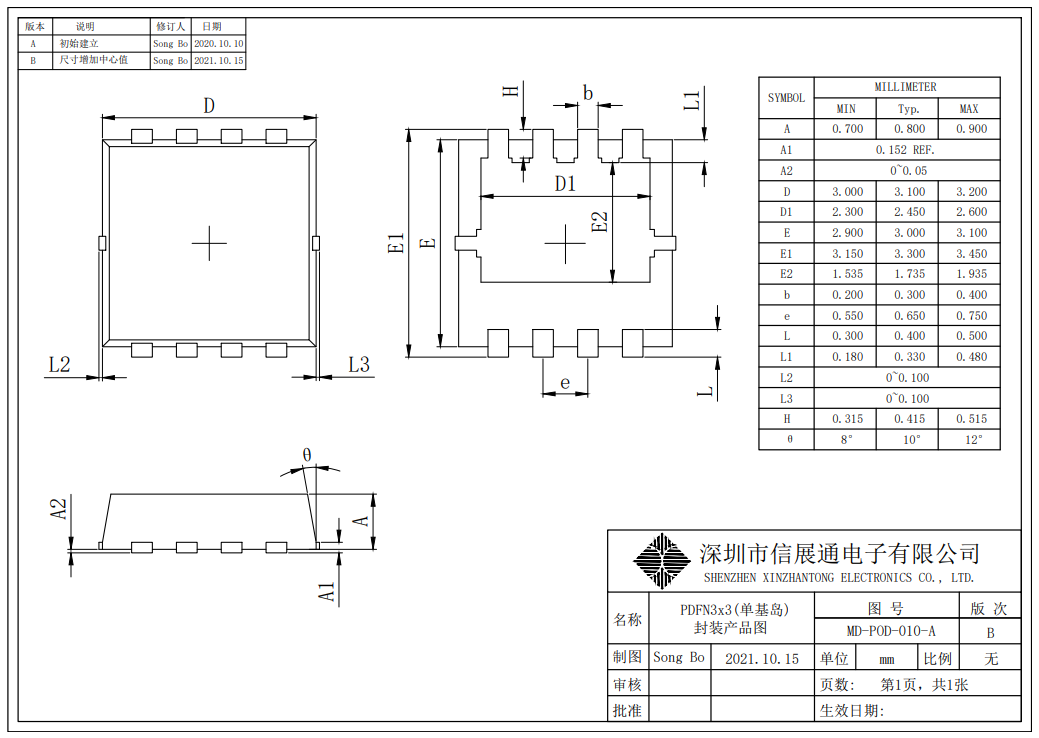 PDFN3*3單基島產(chǎn)品尺寸圖