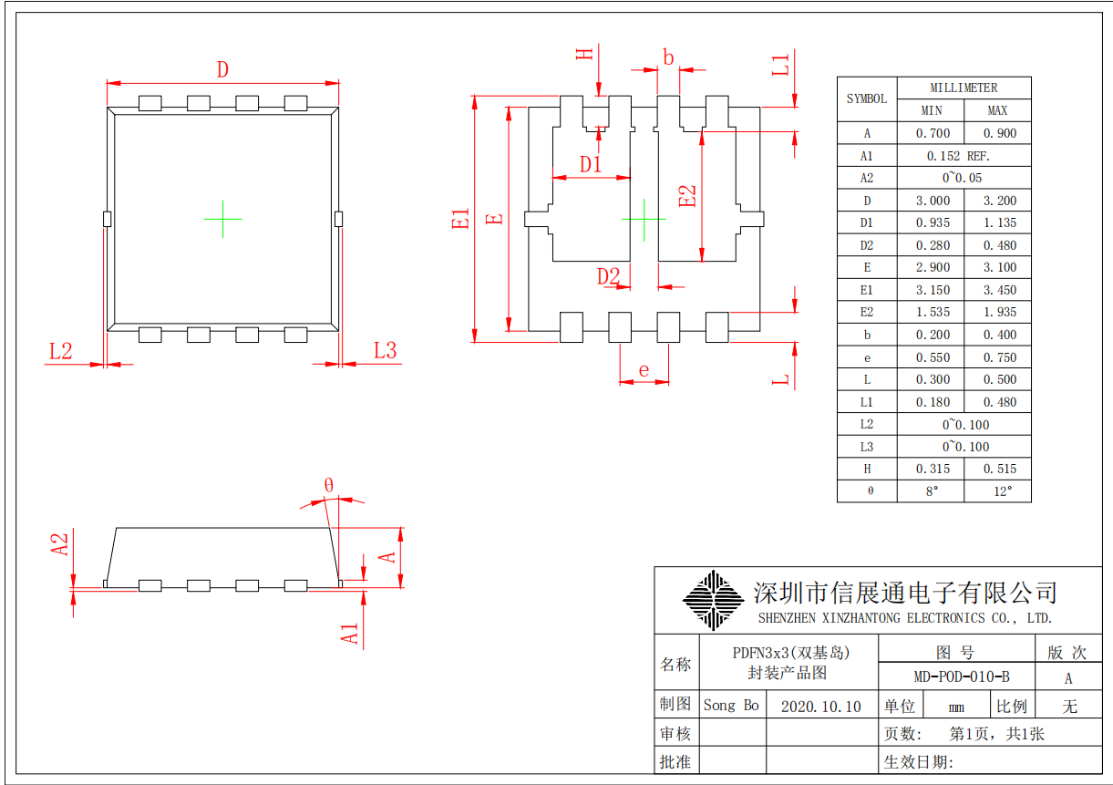 PDFN3*3單基島產(chǎn)品尺寸圖