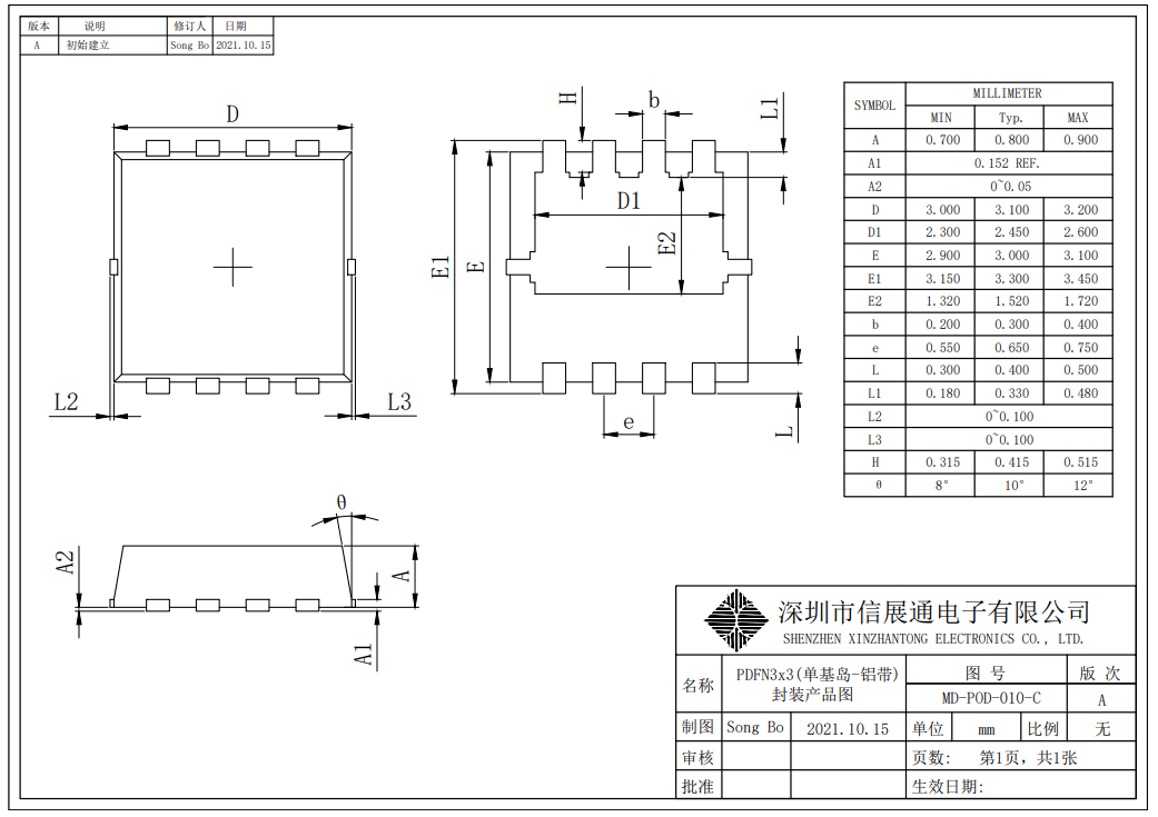 PDFN3x3(單基島-鋁帶)產(chǎn)品尺寸圖